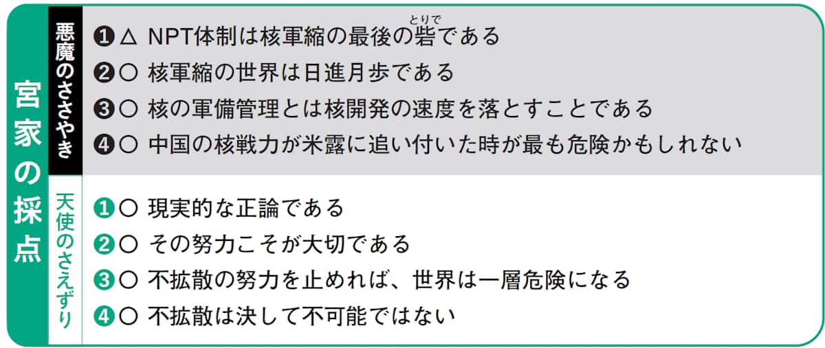 天使のさえずりが常に正しく、悪魔のささやきが常に間違っているという保証はない。悪魔と天使の意見が出揃った後、軍縮・軍拡問題の現状を著者が詳しく解説し、最善と考えられる解答を示す。